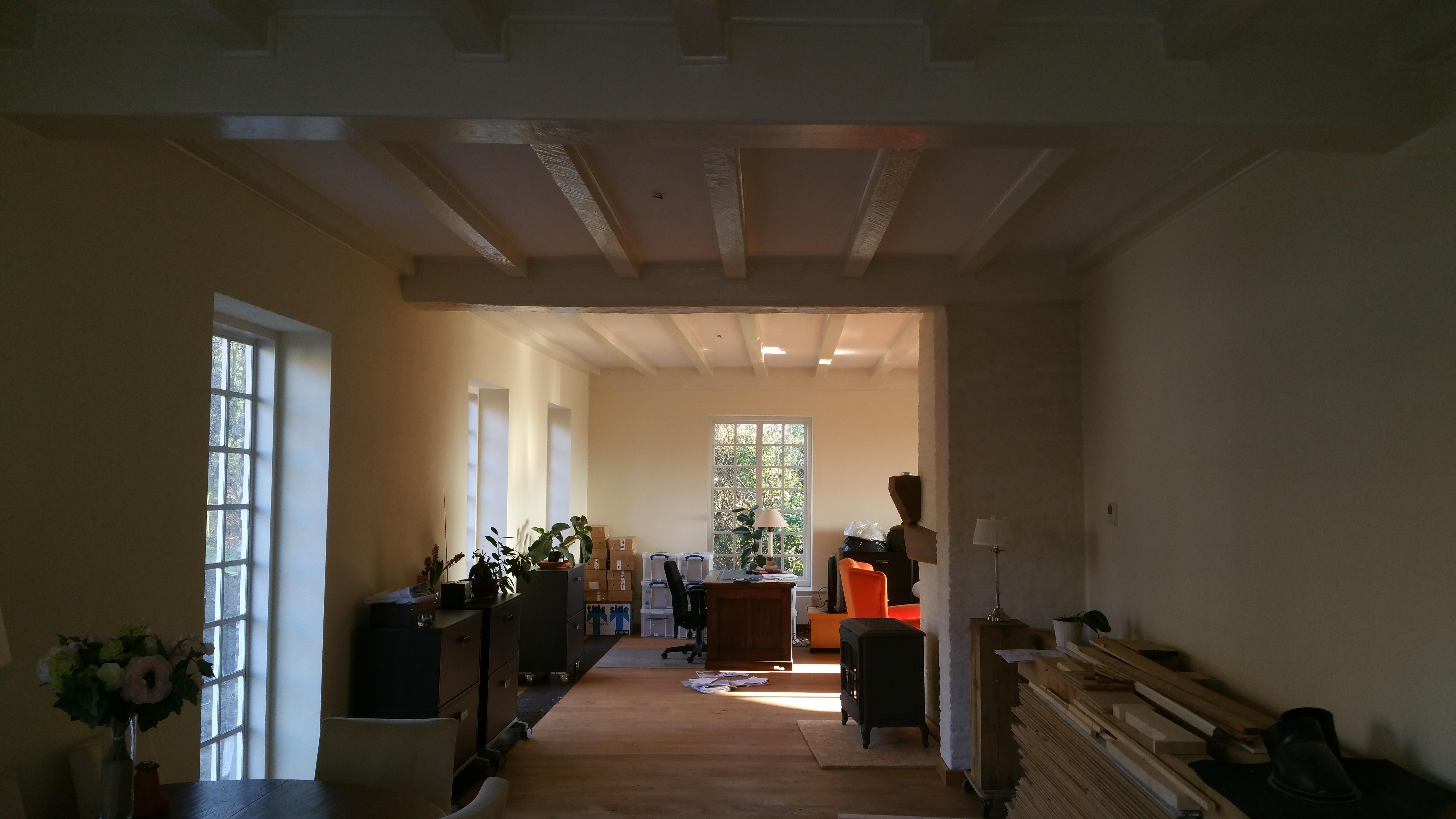 We hebben o.a. verschillende deuren gehangen, eiken balken verlengd en de vloer vernieuwd.